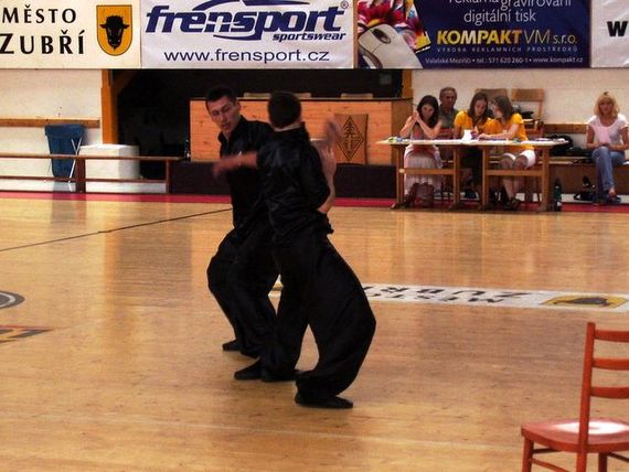 Počas turnaja bola i krátka exhibícia. Za našu školu vystupovali Ján Hrankay a Peter Kremeň, ktorí predviedli Fu Hok chaak, Daan Do Deui Cheug.